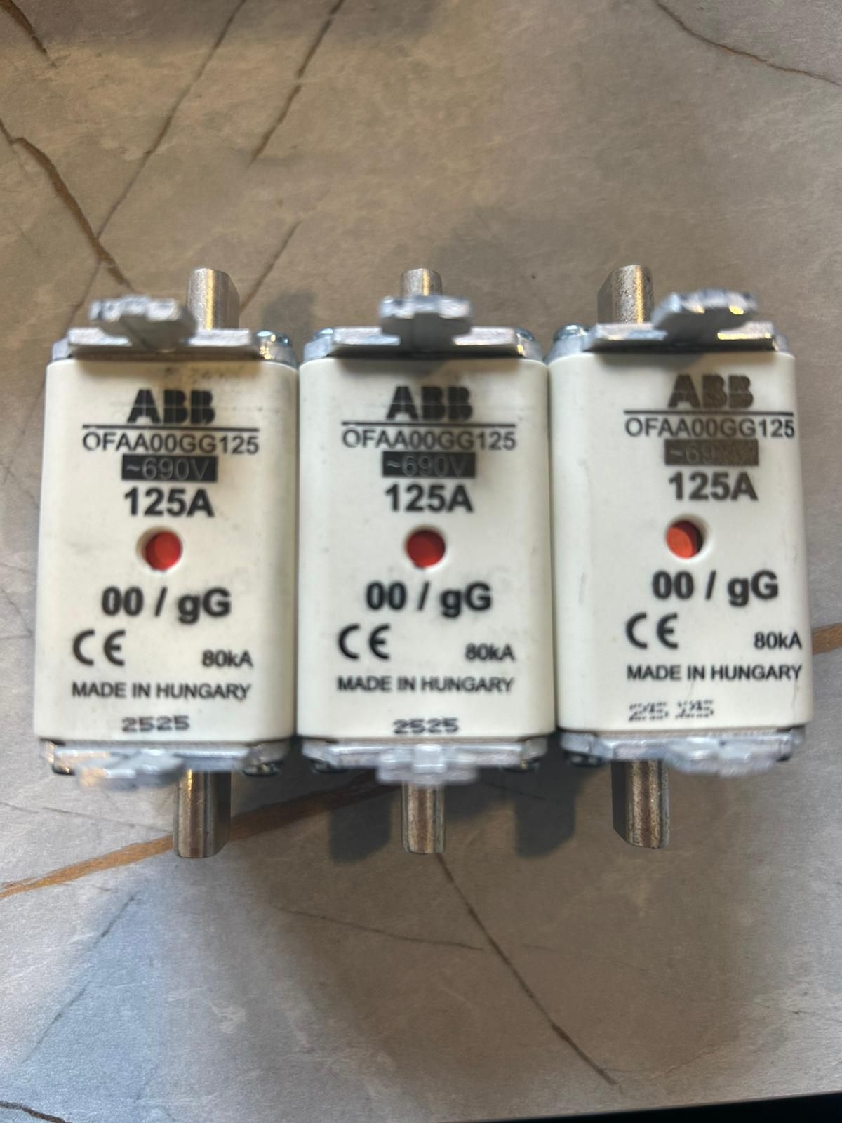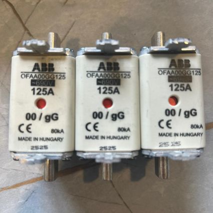 Beschrijving: FUSE NH00 125A/690V gL/gG 80kA (ABB: OFAA00GG125 Fuse Link)